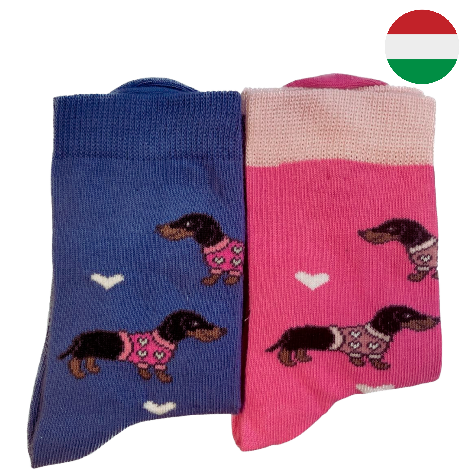 Vidám, tacskós mintás bokazokni, amely nemcsak kényelmet, hanem kutyás hangulatot is visz a hétköznapokba. Ha gyermeked vagy te magad rajongsz a tacskókért, ez a zokni tökéletes választás!