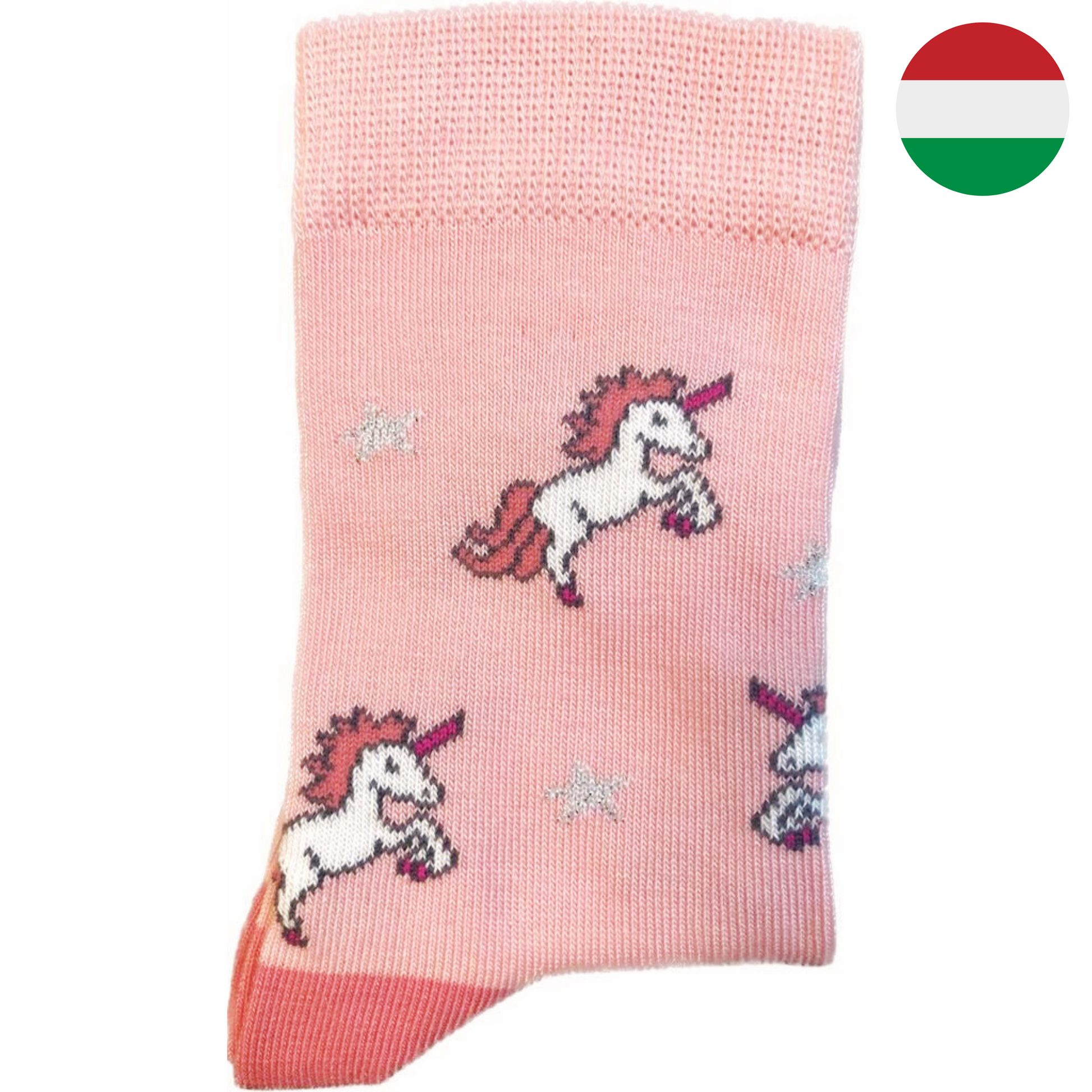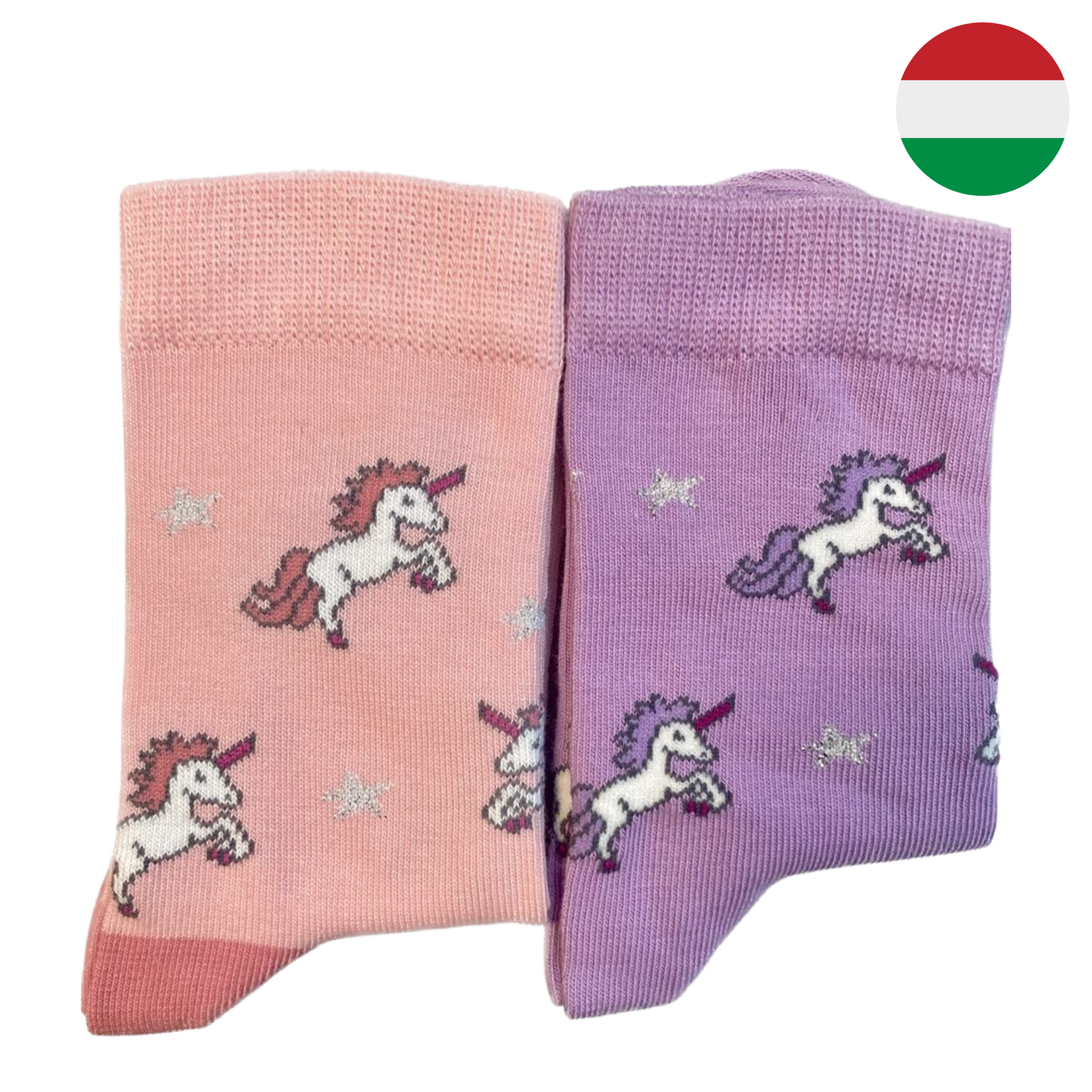 Vidám, unikornismintás bokazokni, amely nemcsak kényelmet, hanem egy kis varázslatos hangulatot is visz a hétköznapokba. Ha gyermeked vagy te magad rajongsz az unikornisokért, ez a zokni tökéletes választás!